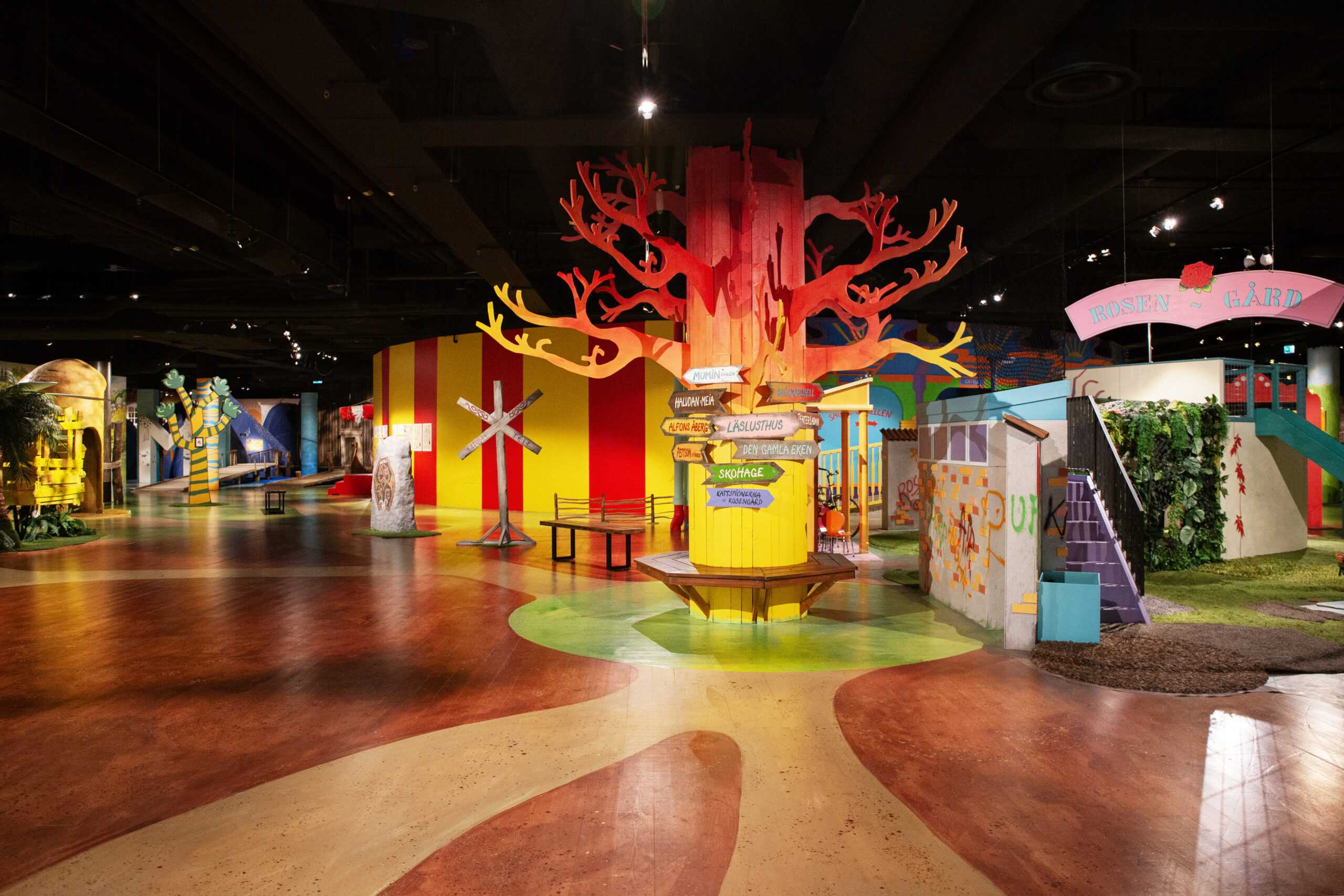 I Funnys Äventyrs sagovärld kan du besöka Pettson & Findus, Mumindalen, Alfons Åberg, Halvdan & Meia, Kattspionerna på Rosengård och Funnys alldeles egna karaktär den vanliga men ovanliga flickan Funny och hennes kompis Humlan Djojj. I den magiska sagokarusellen får du dessutom uppleva tre andra sagovärldar.