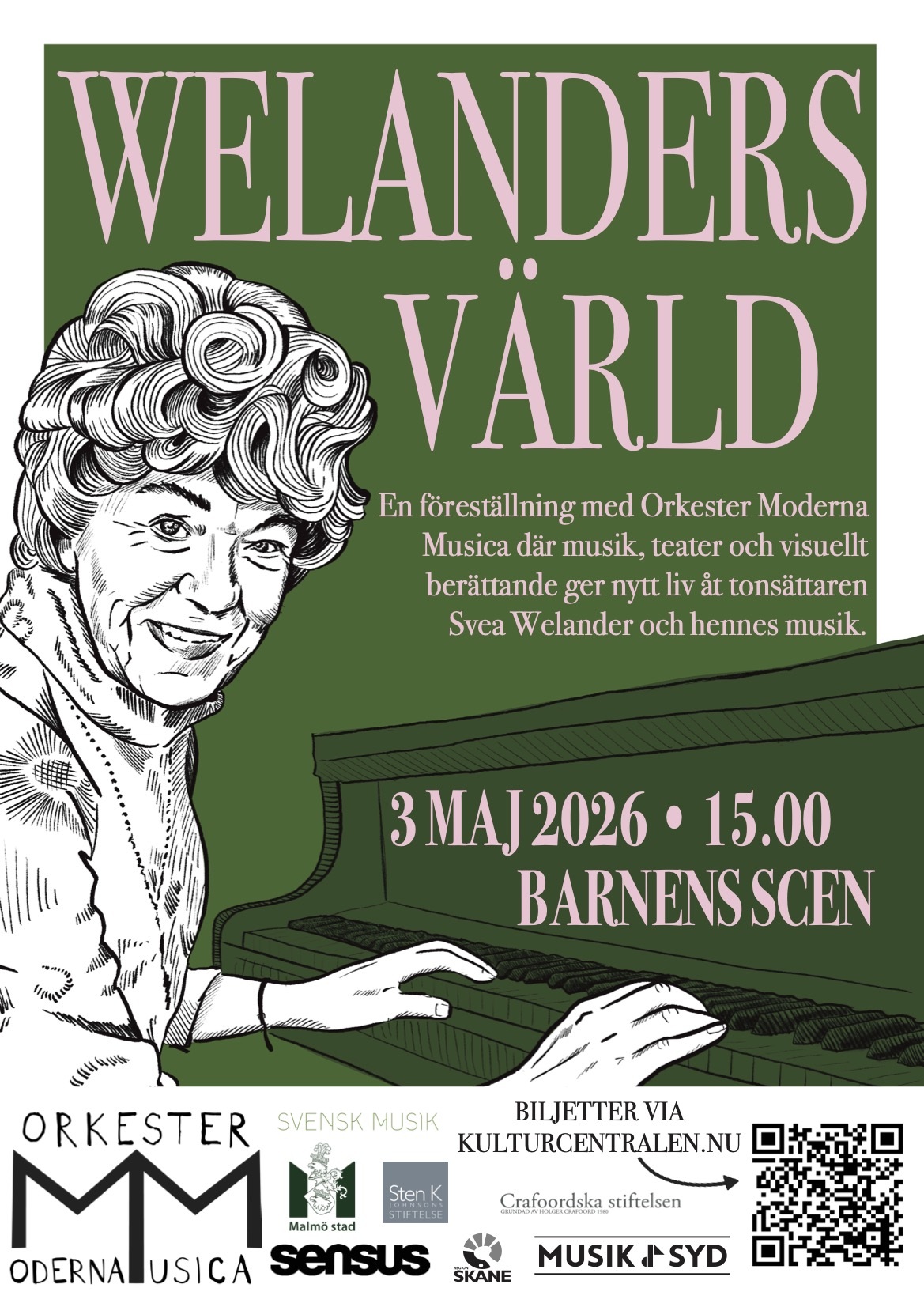 Orkester Moderna Musica presenterar Welanders värld - en performanceföreställning där vi lyfter fram tonsättaren Svea Nordblad Welander (1898-1985) och hennes rika - men nästan bortglömda - musikaliska arv. I samspelet mellan musiker och två skådespelare växer ett eget musikaliskt universum fram.