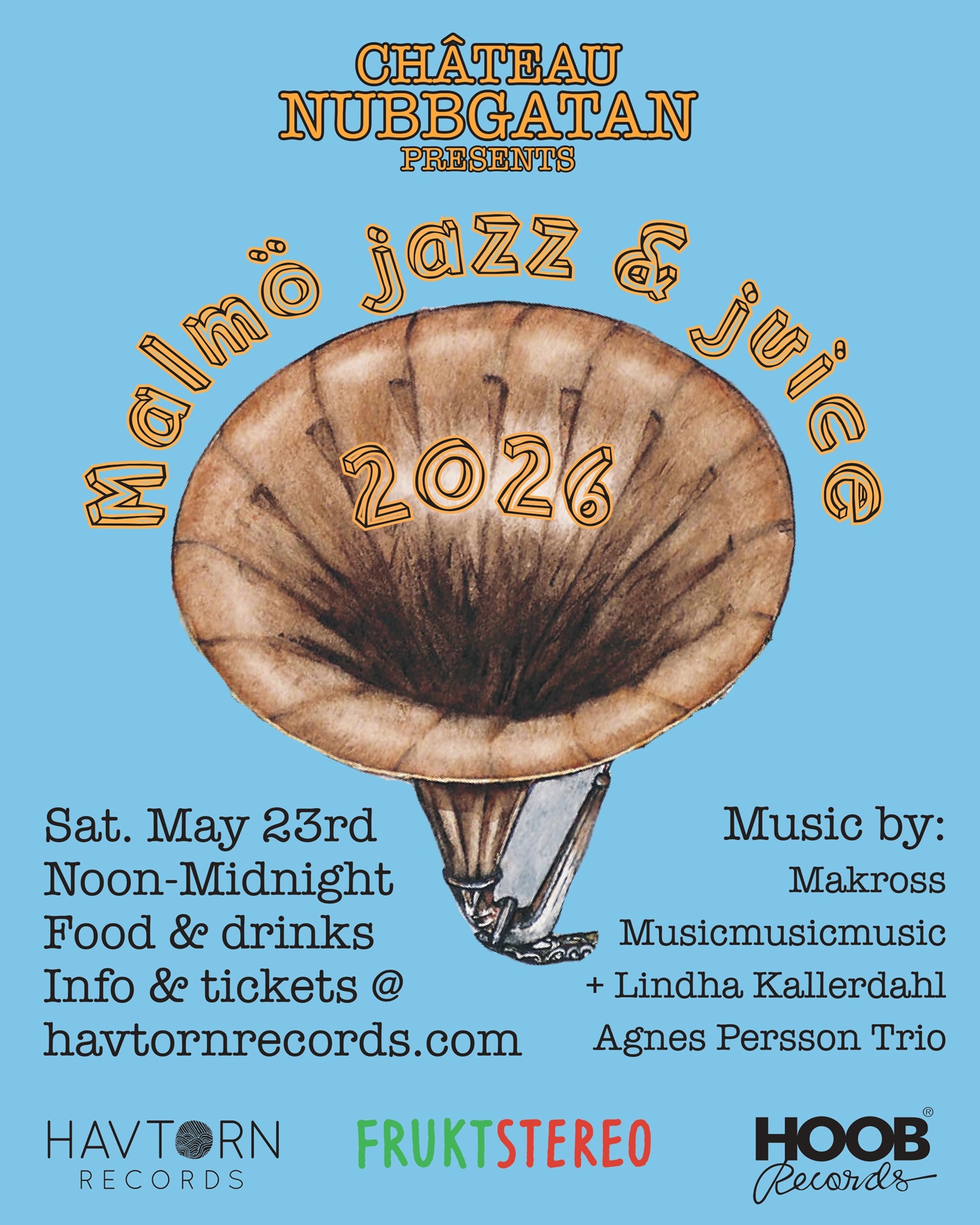 De tre aktörerna Havtorn Records, Hoob Records och Fruktstereo har slagit sina påsar ihop för att skapa något alldeles speciellt; en endagsfestival i Malmö med fokus på musik, mat och dryck. Festivalen äger rum i en helt unik miljö hemma hos Fruktstereo (a.k.a Château Nubbgatan) och i deras musteri nära Malmö central.